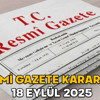RESMİ GAZETE KARARLARI 18 EYLÜL 2025 || Resmi Gazete’de bugün neler var?