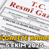 RESMİ GAZETE KARARLARI 5 EKİM 2025 || Resmi Gazete’de bugün neler var?