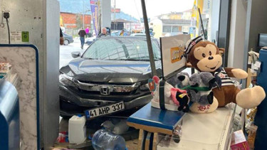 Kocaeli'nin Karamürsel ilçesinde sürücüsünün fren yerine gaza bastığı otomobil akaryakıt istasyonundaki markete çarptı.