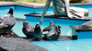 Şanlıurfa’da termometreler 50 dereceyi gösterdi. Çocuklar süs havuzlarında serinlemeye çalışırken, yetişkinler de gölgelerde kalmaya çalıştı.