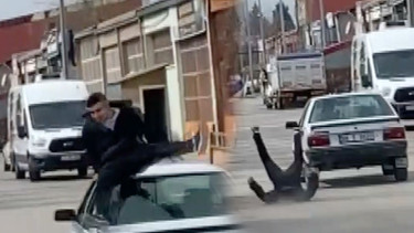 Çorum'da arkadaşının kullandığı aracın tavanına çıkan 17 yaşındaki genç, seyir halindeki otomobilin üstünden düştü. Tehlike dolu anlar anbean kameralara yansıdı.