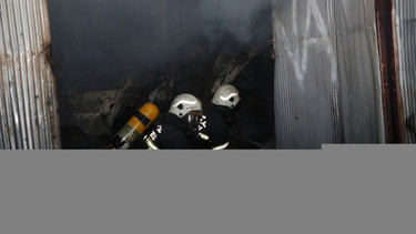 - İtfaiye ekipleri yangına müdahale ederken binanın çatısında çökme oluştu