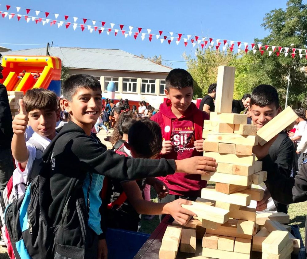 Eğlencenin doruklarına çıkan çocuklar, diğer okullardan da öğrencilerin geldiğini belirtirken, çok güzel zaman geçirdiklerini ve birbirinden güzel oyunlar oynadıkları ve şarkılar söylediklerini dile getirdi.